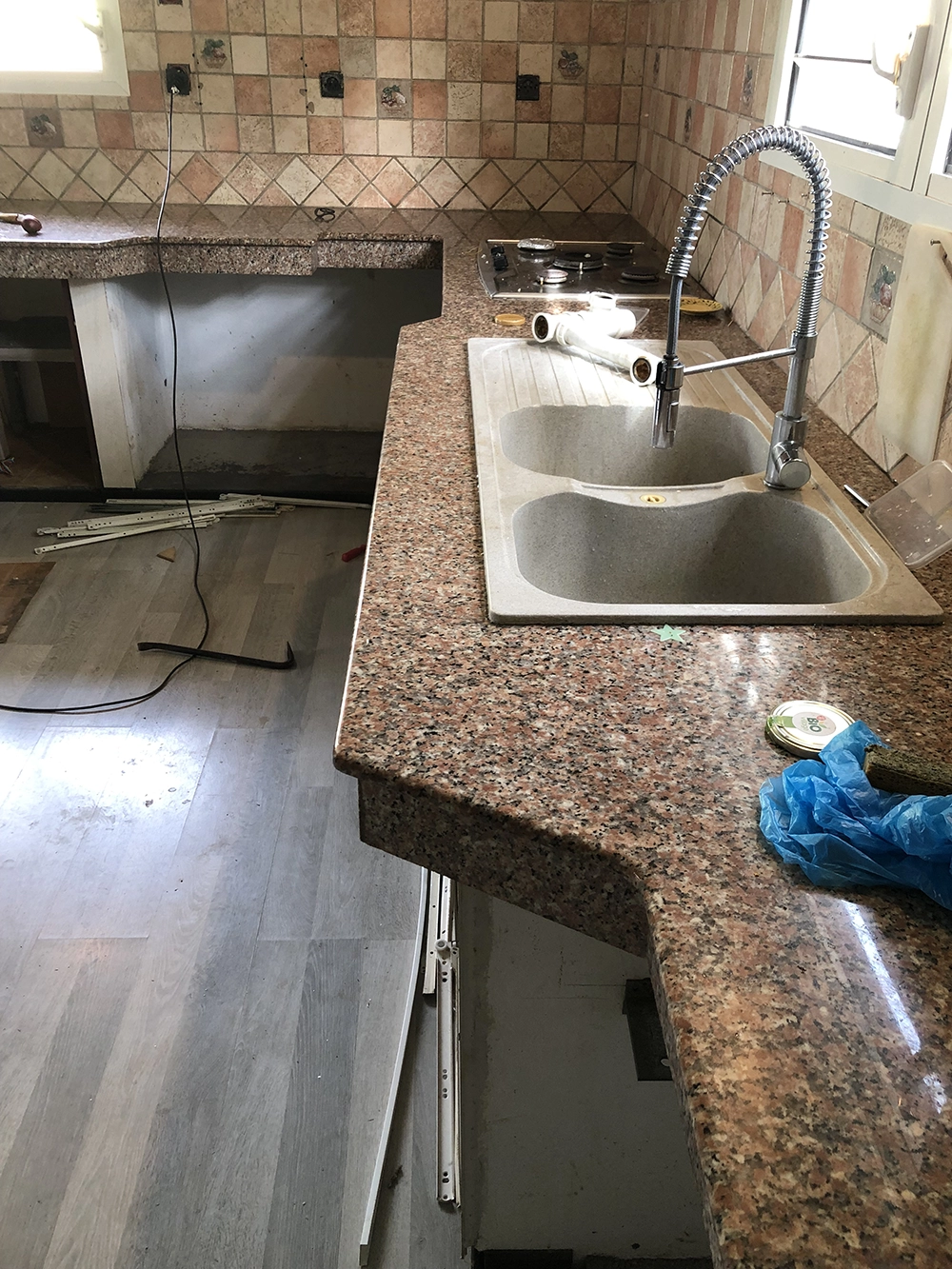La rénovation de cet espace a été entreprise avec une série d'étapes minutieuses visant à transformer complètement son apparence et sa fonctionnalité. Tout d'abord, l'ancien plan de travail, une paillasse en béton armé, a été démonté et démoli pour faire place à une toile vierge. Les réseaux d'eau et d'électricité ont ensuite été entièrement rénovés pour garantir un fonctionnement optimal et sécurisé. Pour illuminer davantage la pièce, une ouverture supplémentaire a été créée, permettant à la lumière naturelle d'inonder l'espace. Un plafond suspendu en plaques de plâtre a été installé avec précision, offrant une finition moderne et élégante. Le sol a été revêtu de carrelage, apportant à la pièce une esthétique raffinée et facile à entretenir. La cuisine a ensuite été soigneusement posée, complétant ainsi la transformation fonctionnelle de l'espace. Enfin, une touche finale a été apportée avec l'application de deux couches de peinture sur l'ensemble des murs et du plafond, créant une atmosphère fraîche et accueillante. L'ensemble du processus a abouti à une rénovation réussie, alliant fonctionnalité moderne et esthétique soignée.